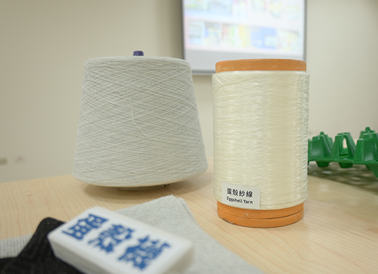 (照片說明:計畫起始交流會展示之蛋殼紗線)