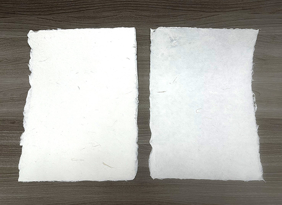 (照片說明:添加蛋殼鈣粉之手抄紙實際印製成品)