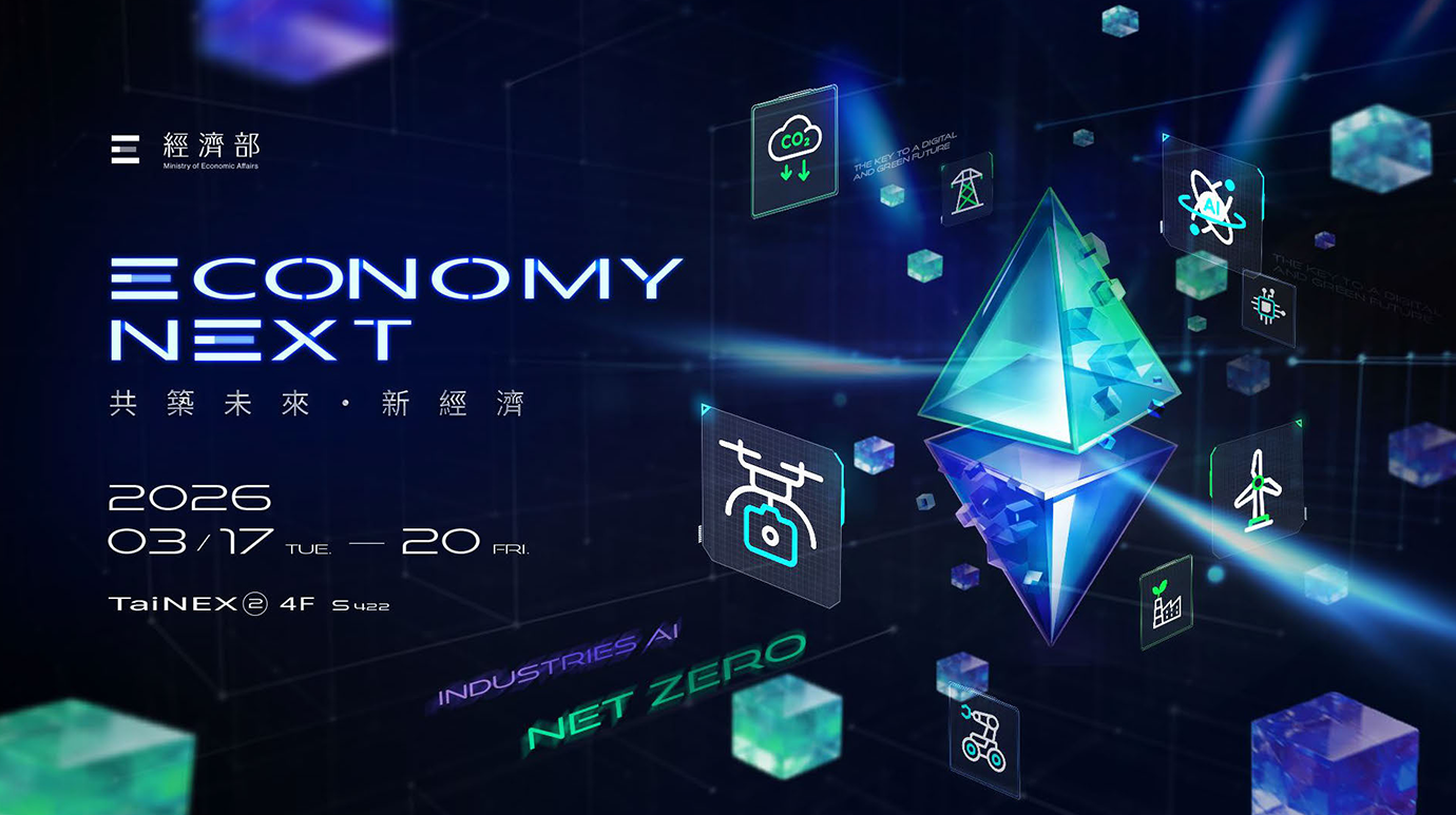 經濟部以『ECONOMY NEXT 共築未來新經濟-兼容淨零與數位的孿生共構展館』為核心概念,