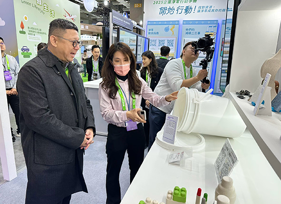 塑膠工業技術發展中心(塑膠中心) 今年配合經濟部中小及新創企業署,以「小企業,大未來,共築綠循環」為主題,於「臺灣淨零願景館」中展示多項輔導成果,呈現中小企業如何在專業輔導下,兼具 AI 智慧與循環美學,成功連結國際永續商機。